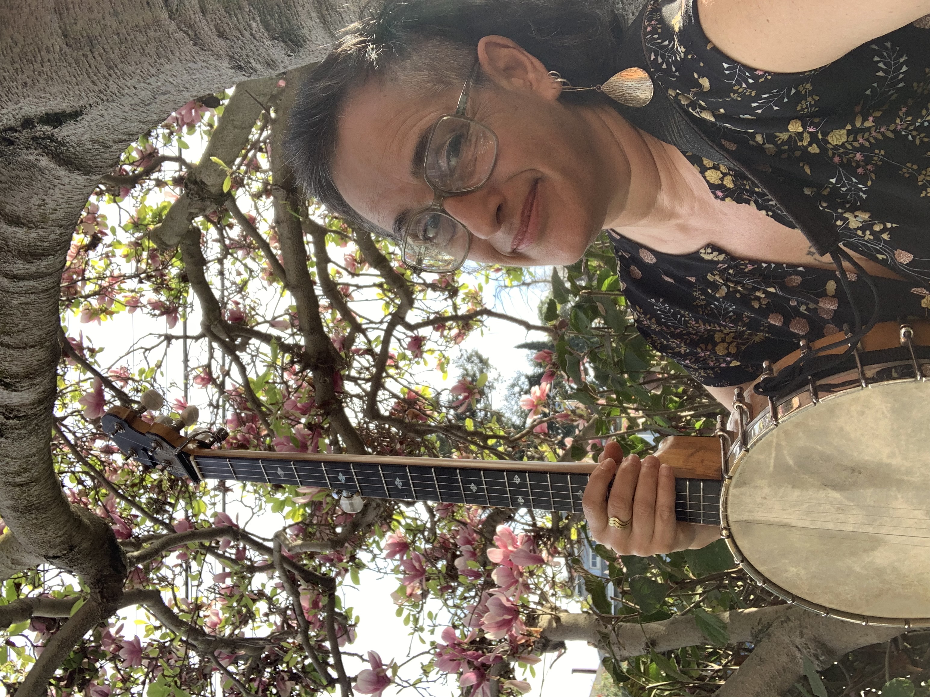 Banjo player, singer, songwriter, percussive-dancer, choreographer and square-dance caller, Evie Ladin grew up steeped in traditional folk music/dance, and brings a contemporary vision to her compositions and choreography. Evie’s performances, recordings and teaching reconnect Appalachian music/dance with other African-Diaspora traditions, and have been heard from A Prairie Home Companion to Lincoln Center, Hardly Strictly Bluegrass to Celtic Connections, Brazil to Bali. Based in Oakland, CA, Evie tours solo, with Keith Terry, and her Evie Ladin Band; and has produced numerous CDs and instructional DVDs. In the percussive dance world, she directs the moving choir MoToR/dance, co-founded the International Body Music Festival, and is an ace freestyle flatfooter. In the trad world, Evie teaches banjo online at Peghead Nation, privately, and many camps. In the songwriter world, she just writes clever, powerful songs. A highly entertaining performer, Evie enjoys facilitating arts learning in diverse communities. www.evieladin.com